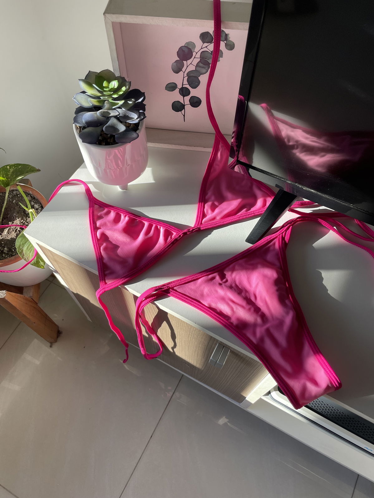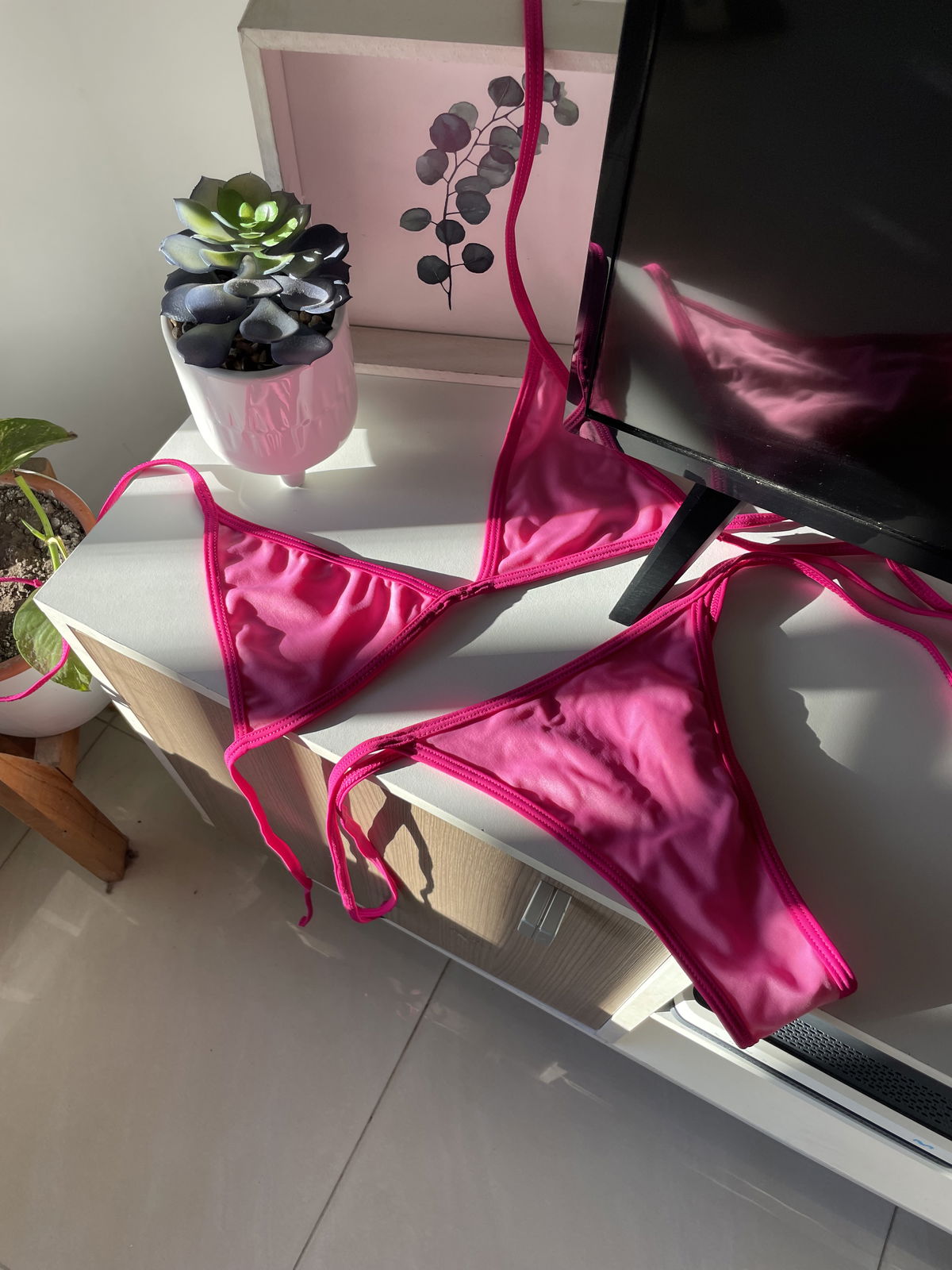 - Bikini MICRO BIKINI excelente calidad lycra premium ,tricot de rosett con filtro solar UV forreria doble rebote no trae tazas, la bikini es con brillos dado a la tela de alta calidad, es el tono de la segunda foto que es la foto producto, la primer foto es la referencia de cómo queda puesta ya que son micro bikinis , de querer que te tape más, recomiendo comprar un talle más al que usas habitualmente, cualquier duda consultar y guiarse por las medidas