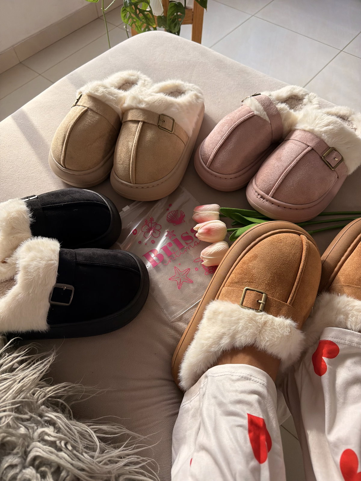 Pantuflas importadas premium suaves y cĂłmodas, ideales para este invierno. Cuentan con interior de peluche sĂşper suave que mantiene tus pies bien abrigados.